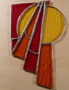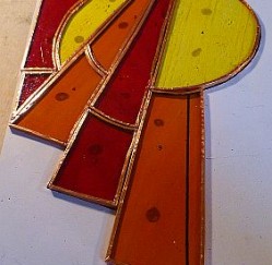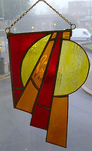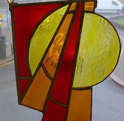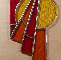 00Are you interested in a Copper Foil Stained Glass Class but are not sure what this involves or what to expect? We have put together this brief tutorial to help you. Having choosen your glass cut the pieces to fit your pattern. For cooper foil cut the pieces to the lines of your pattern. Wrap the edges of each piece in copper foil. Solder the pieces of glass together along the lines of copper foil. Add chain so that you can hang the suncatcher up. Clean the glass then add black patina which will turn the solder lines black. Then, after another clean, the piece is finished. If you want to know about our leaded class have a look at our lead tutorial. For more details of the stained glass classes at Crafts Bee click here. The Finished Piece...