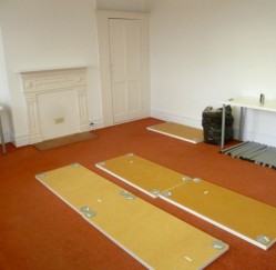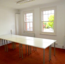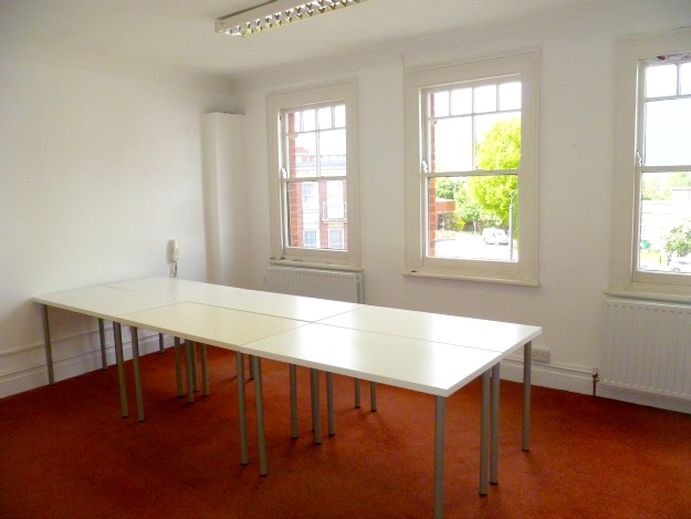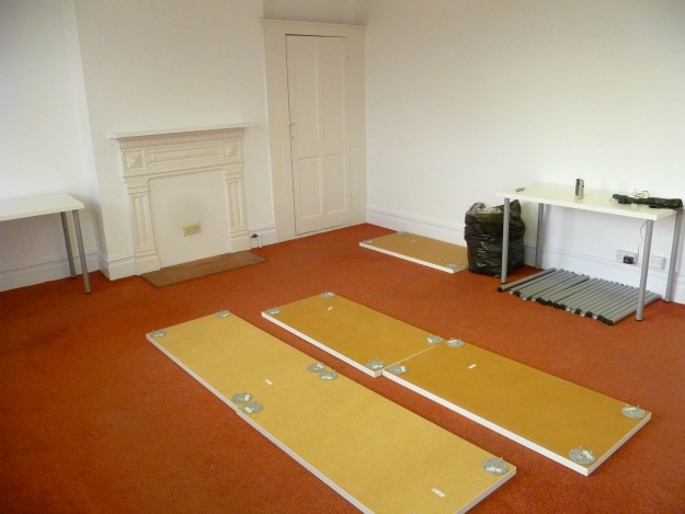 The room was painted a couple of weeks ago and this morning the furniture arrived.  The tables have now been assembled and Mhairi and I have been moving them around the room to get the best layout.  Moving the sewing to another room will enable each person to have their own table to work on and more space during courses.