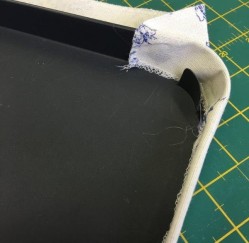 A close up of the inside on the corner. As the corner is curved I had to make a small pleat on the outside of the lid.