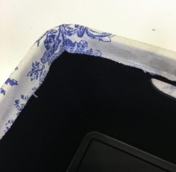 Fold over the fabric to cover the inside of the lid and use glue to stick it into place. Before sticking a corner play around with the fabric to work out the neatest way to attach it. You will not see the inside of the lid so make sure it is the outside that looks neat.