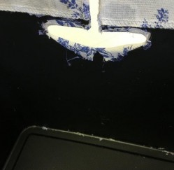 Glue the fabric around the channel and the finger hole. You may need to snip the fabric around the finger holes to be able to stick it down.