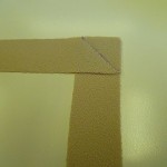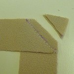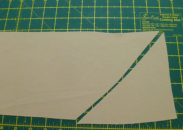 The first stage is to cut a rectangle of your fabric. Then fold one corner upwards making a triangle of fabric on top of the rectangle.