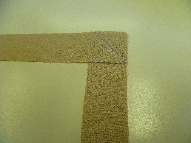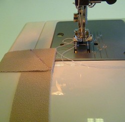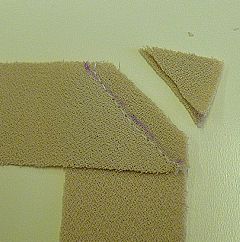 Put two rectangles of fabric together as per the picture. Make sure the right sides of the fabric are together. Then sew from one corner of the join to the other. It is essential that you sew from corner to corner along the line shown in the picture. It will not work if you use the other corners.