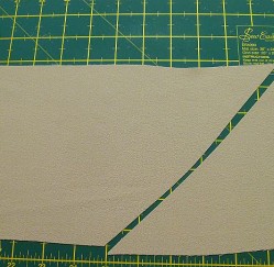 The longer end of the triangle is the 45 degree line. Cut along this line.