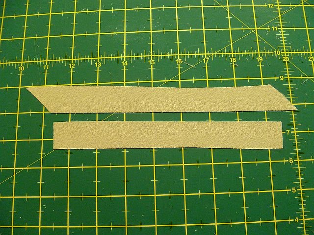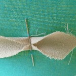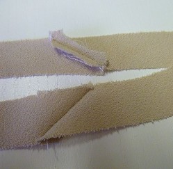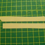 Using this cut edge you need to make strips of material cut parallel to this line. My strips were 1 inches wide. There are two ways to cut the strips. If you have a rotary cutter and quilting rulers use this but if not draw lines on the fabric parallel to the cut edge and use scissors to cut them. You will end up with several strips that have pointed edges. Cut off the edges to make rectangles.