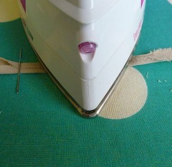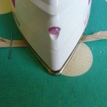 Keep pulling the strip under the needle and the edges will come together forming the shape of the bias binding. Place your iron so that the strip passes through the needle and then the iron. Pull the strip through to the end. Keep an eye on the strip to make sure each side is folding over evenly to the middle of the strip.