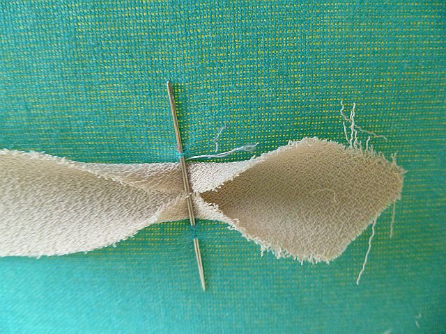 Repeat this for each rectangle ending up with a long strip. The photo shows both sides of a join.