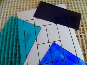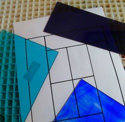 Cut the glass to just within the lines on the pattern. This will allow room for the centre of the lead cane.