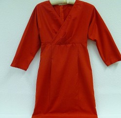 The dress is a classic design that will suit many figure shapes. It has a crossover infront of the bust and pleats to allow you to shape it depending on how full you want it. Darts in the back help the shaping and the skirt length can be adjusted to above and below the knee. Sleeves can be short or three quarter length so it really is a flexible pattern that you can make your own.