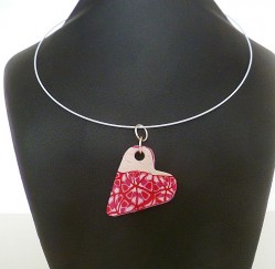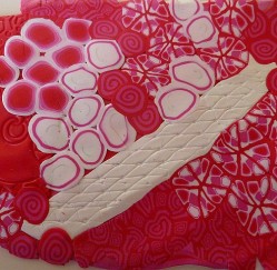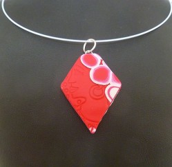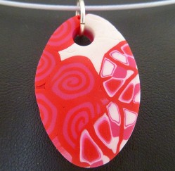 00Have you heard the term Polymer Clay but are unsure what it is, why some people use terms like Fimo and Premo and what can you actually make from it? Polymer Clay is a generic term for clay you bake to make it hard. Within this there are various different brands of clay like Fimo, Premo and Kato. All are slightly different and bake for slightly different times or at different temperatures but all essentially do the same thing and are great for making really unique jewellery. The first thing to do, and one of the most difficult for me, is to make a decision as to what colour clay to use. I seem to be naturally drawn to purple at the moment but wanted to make myself try something different colour wise. Eventually I choose and used half a block of white and a third of a block of red and a third of pink. You will see later on this quantity allowed me to make several pendants and still have quite a lot left over. Having chosen the clay the next step is to condition it. Initially the clay is too crumbly to use and conditioning makes it soft and pliable. Condition it using a roller or a pasta machine until you can fold it without it crumbling. Once it is conditioned you are ready to start being creative. There are so many options here but I have followed the steps we take on our Polymer Clay course to make Pendants. To make our pendants we use a base of clay and then cover this with slices from a Polymer Clay Cane. Canes are like sticks of rock. They are long and thin and have a pattern that goes all the way through them. To make my pendants I started by making a basic Bulls Eye Cane and a Jelly Roll Cane. The Bulls Eye Cane is a sausage of clay with a thinner sheet of clay wrapping it. You can vary the cane by adding additional wrappings and varying the thickness of them. The Jellyroll is two sheets of clay, one on top of the other, that are rolled together. I then cut this in various ways to make a Tile Cane. For the next cane I used a Skinner Blend. The skinner Blend blends two or three colours together to get a thin piece of clay...