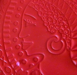 Finally to finish the pieces to make my pendants from I textured two pieces of clay. For one I used a net bag normally used to wrap fruit in and for the other I used a specially made sheet for texturing clay.